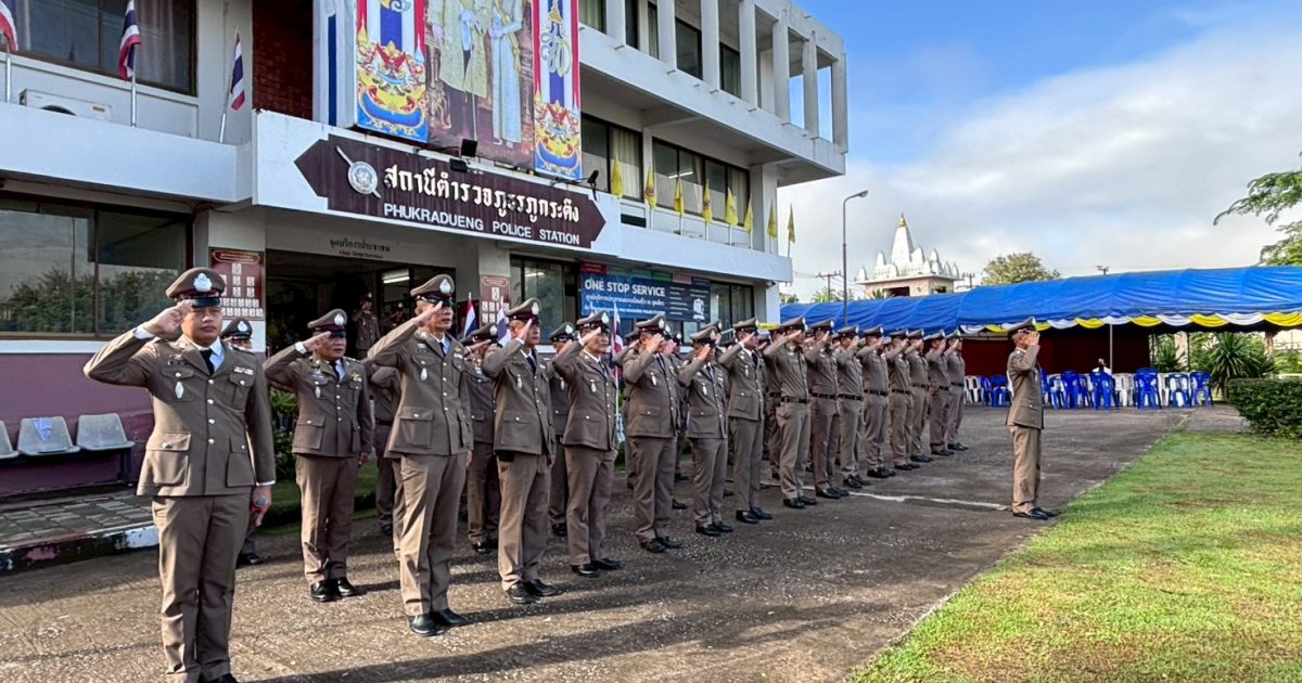 วันที่ 17 ตุลาคม 2568 เวลา 06.30 น. โดยการอำนวยการของ พ.ต.อ.ณัทญา ทองจันทร์ ผกก.สภ.ภูกระดึง, พ.ต.ท.สุริยา แสงสุริยา รอง ผกก.ป.ฯ, พ.ต.ท.ชยพล พรเติม รอง ผกก.สส.ฯ และ พ.ต.ท.ประสาท ปาปะขา รอง ผกก.(สอบสวน)ฯ นำข้าราชการตำรวจสภ.ภูกระดึง พร้อมทั้งแม่บ้านตำรวจ และราษฎรในพื้นที่อำเภอภูกระดึง ร่วมพิธีทำบุญตักบาตรและจัดกิจกรรมกีฬาภายในสังกัด เนื่องในวันสถาปนาสำนักงานตำรวจแห่งชาติ 17 ตุลาคม ของทุกปี ณ สถานีตำรวจภูธรภูกระดึง