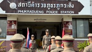 คณะตรวจราชการ กองตรวจราชการ4 จเรตำรวจ นำโดย พ.ต.อ.โกศล แก่นแก้ว (หัวหน้าชุด) ผกก.ฝสต.1 กต.4 จต. โดยมี. พ.ต.อ.ณัทญา ทองจันทร์ ผกก.สภ.ภูกระดึง พร้อมข้าราชการตำรวจ ตั้งแถวรับ คณะผู้ตรวจฯ ได้ตรวจเครื่องแบบ ทรงผม และระเบียบแถว ฯลฯ เข้าตรวจแฟ้มตามสายงานแต่ละด้าน นำข้าราชการตำรวจเข้าห้องประชุม รับฟังนโยบาย/แนวทางการปฏิบัติราชการ และรับฟังคำแนะนำจากคณะผู้ตรวจ