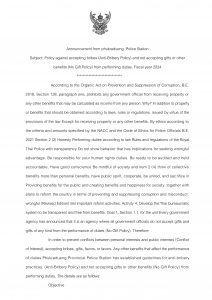นโยบายต่อต่านการรับสินบน (Anti-Bibery Policy) และการไมรับของขวัญของกำนัลหรือ ประโยชนอื่นใด (No Gift Policy) จากการปฏิบัติหนาที่ ประจำปงบประมาณ พ.ศ.2568