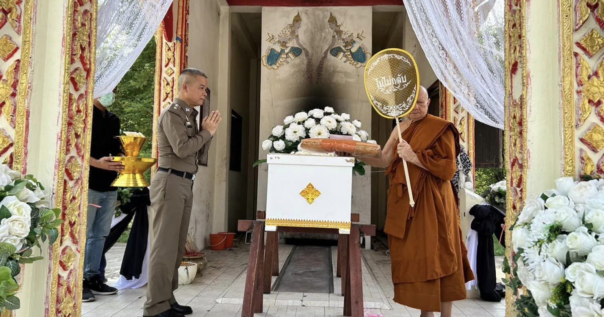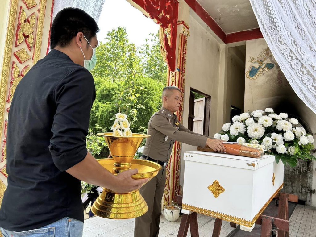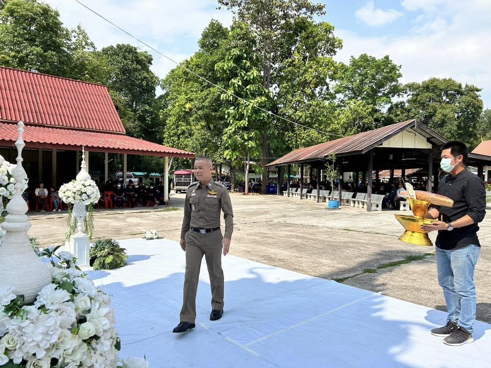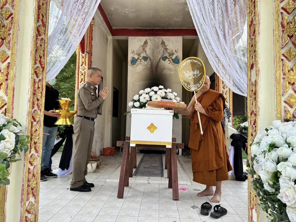 พ.ต.อ.ณัทญา ทองจันทร์ ผกก.สภ.ภูกระดึง(ประธานในพิธี) นำข้าราชการตำรวจในสังกัดร่วมไว้อาลัย ในพิธีฌาปนกิจ นางณิชรัตน์ ชัชวาล แม่ยาย ของ ด.ต.ปริญญา ดีโว