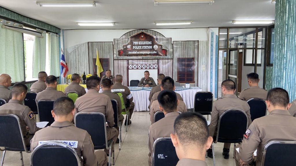 ตามโครงการ “คุณธรรมและความโปร่งใสในการดำเนินงานของสถานีตำรวจ” ประจำปีงบประมาณ พ.ศ. 2568 วันที่ 10 กุมภาพันธ์ 2568 เวลา 13.00 น. พ.ต.อ.ณัทญา ทองจันทร์ ผกก.สภ.ภูกระดึง เรียกข้าราชการตำรวจ สภ.ภูกระดึง ประชุมชี้แจ้ง แต่ละสายงานเพื่อขอความร่วมมือผู้มารับบริการหรือติดต่อราชการตอบแบบวัดการรับรู้ของผู้มีส่วนได้ส่วนเสียภายนอก (EIT) ตามโครงการ “คุณธรรมและความโปร่งใสในการดำเนินงานของสถานีตำรวจ” ประจำปีงบประมาณ พ.ศ. 2568