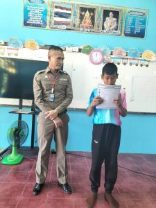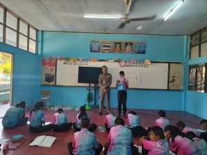 โดยการอำนวยการของ พ.ต.อ.ณัทญา ทองจันทร์ ผู้กำกับการสถานีตำรวจภูธรภูกระดึง มอบหมายให้ด.ต.รุ่งโรจน์ คำพิทูรย์ ครูตำรวจแดร์ตามโครงการการศึกษาเพื่อต่อต้านการใช้ยาเสพติดในเด็กนักเรียน(D.A.R.E.ประเทศไทย)เข้าทำการสอนบทเรียนรวมถึงการบรรยายให้ความรู้ด้านต่างๆตามนโยบายของผู้บังคับบัญชา