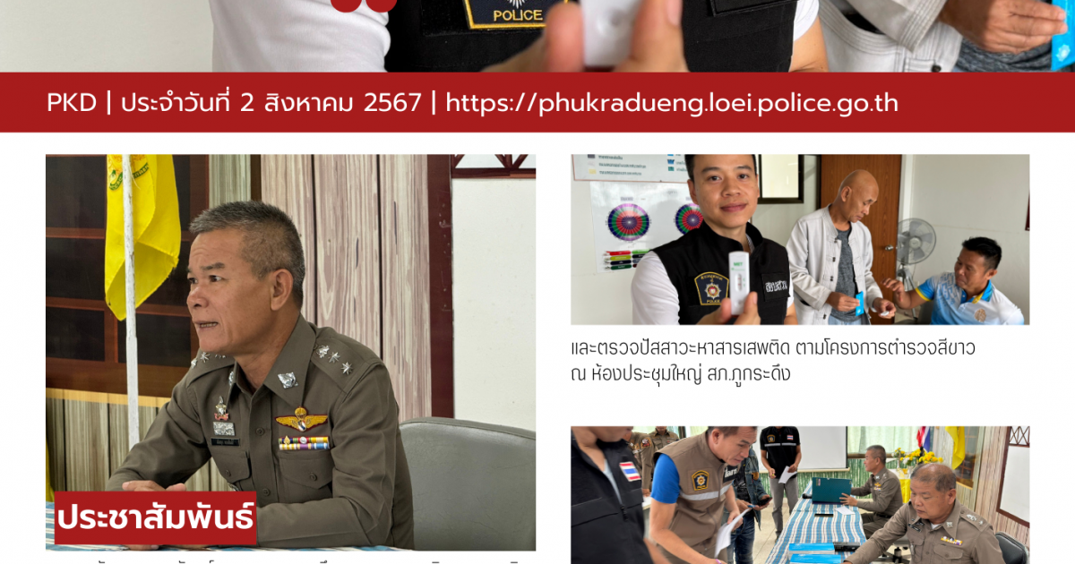 พ.ต.อ.ณัทญา ทองจันทร์ ผกก.สภ.ภูกระดึง และ พ.ต.ท.สุริยา แสงสุริยา รอง ผกก.(ป.)สภ.ภูกระดึง นำข้าราชการตำรวจใน สภ.ภูกระดึง ทุกนาย เข้าร่วมประชุมชี้แจง ข้อสั่งการจากผู้บังคับบัญชา และตรวจปัสสาวะหาสารเสพติด ตามโครงการตำรวจสีขาว ณ ห้องประชุมใหญ่ สภ.ภูกระดึง