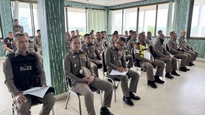 พ.ต.อ.ณัทญา ทองจันทร์ ผกก.สภ.ภูกระดึง นำข้าราชการตำรวจ สภ.ภูกระดึง เข้าร่วมประชุมประจำเดือน ชี้แจงข้อสั่งการจากผู้บังคับบัญชา หารือแนวทางการปฎิบัติ ให้เกิดประสิทธิภาพสูงสุดในการปฎิบัติหน้าที่ พร้อมมอบเกียรติบัตรให้แก่ข้าราชการตำรวจที่ปฎิบัติหน้าที่ดีเด่น ณ ลานหน้า สภ.ภูกระดึง