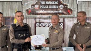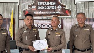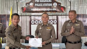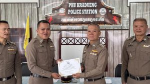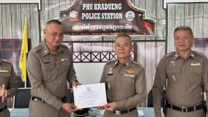 พ.ต.อ.ณัทญา ทองจันทร์ ผกก.สภ.ภูกระดึง นำข้าราชการตำรวจ สภ.ภูกระดึง เข้าร่วมประชุมประจำเดือน ชี้แจงข้อสั่งการจากผู้บังคับบัญชา หารือแนวทางการปฎิบัติ ให้เกิดประสิทธิภาพสูงสุดในการปฎิบัติหน้าที่ พร้อมมอบเกียรติบัตรให้แก่ข้าราชการตำรวจที่ปฎิบัติหน้าที่ดีเด่น