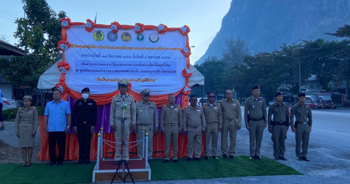 นำข้าราชการตำรวจ สภ.ภูกระดึง เข้าร่วมพิธีเปิดศูนย์ปฏิบัติการป้องกันและลดอุบัติเหตุทางถนนช่วงเทศกาลปีใหม่ 2567