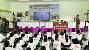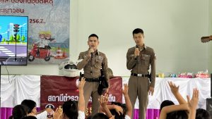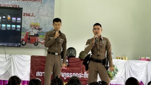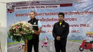 พ.ต.อ.ณัทญา ทองจันทร์ ผกก.สภ.ภูกระดึง และ พ.ต.ต.รุ่งศักดิ์ วรนาม สวป.สภ.วังสะพุง (ผู้กล่าวรายงาน) พร้อมด้วยคณะวิทยากรจาก สภ.ภูกระดึง เข้าอบรมใน โครงการส่งเสริมความปลอดภัยและป้องกันอุบัติเหตุ ในกลุ่มเด็กวัยเรียนและเยาวชน ประจำปี 2567 พร้อมด้วย โครงการครู 5 นาที ,หนี ซ่อน สู้ ,ป้องกันยาเสพติด