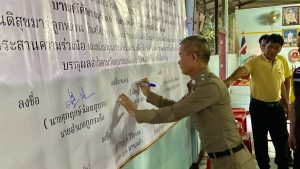ลงนาม MOU (บันทึกข้อตกลงร่วมมือ) เรื่องการป้องกันและแก้ไขปัญหายาเสพติดในหมู่บ้าน ระหว่าง ผู้นำชุมชนและคณะกรรมการหมู่บ้าน พร้อมพี่น้องประชาชนชาวบ้านศรีศักดา ร่วมพิธีเปิดโครงการชุมชนบำบัดอย่างยั่งยืนเพื่อแก้ไขปัญหายาเสพติดในชุมชนแพร่ระบาดยาเสพติดฯ