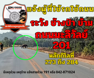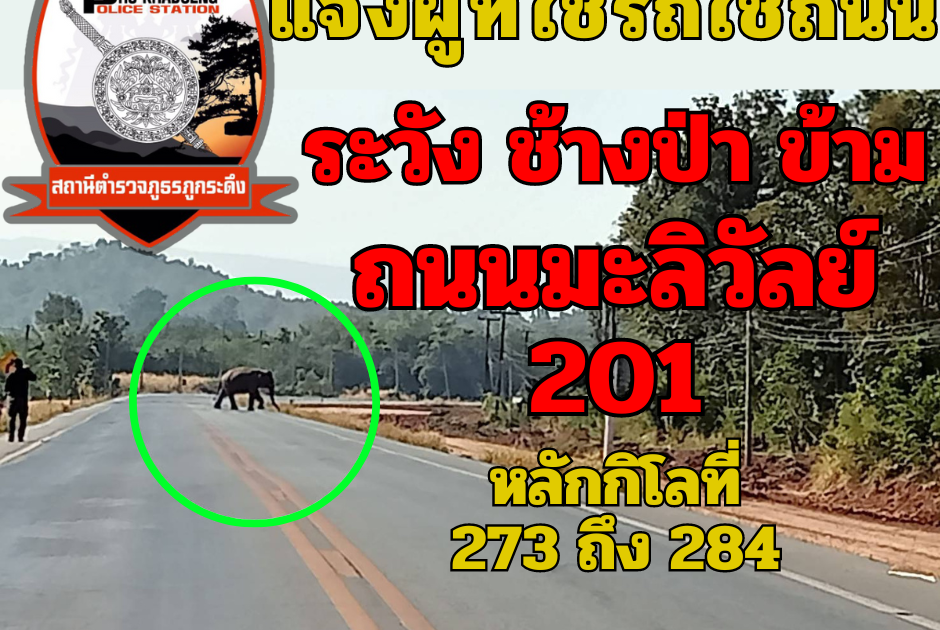 แจ้งผู้ที่ใช้รถใช้ถนน #ระวัง #ช้างป่า #ข้ามถนน มะลิวัลย์ 201 หลักกิโลที่ 273 ถึง 284